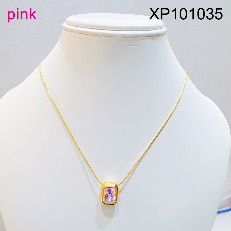 Level B Stainless Steel New Trendy Women Jewelry Rectangle Pink Glass zirconium Golden Pendant