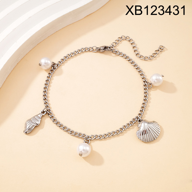 Home > Level B Stainless Steel New Trendy Women Jewelry Summer beach Animal Conch Shell Steel color Bracelet