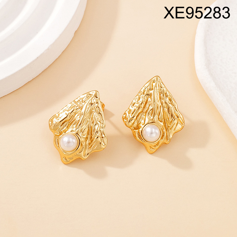 Level B Stainless Steel New Trendy Women Jewelry Pearl Style/Plastic Beads Geometry Golden Earrings