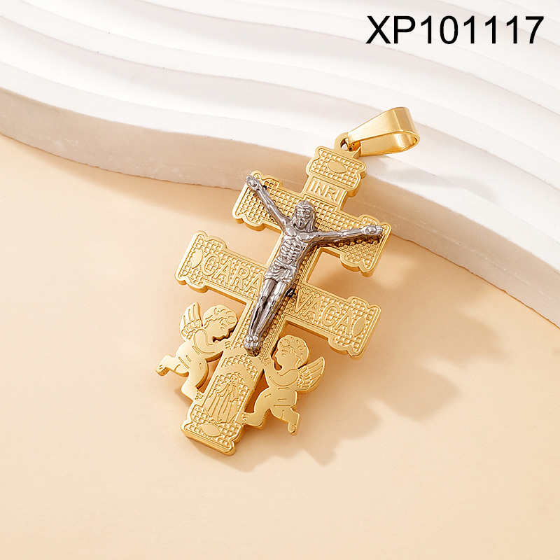 Level B Stainless Steel New Trendy Man Jewelry Cross Angel Two Tone Pendant