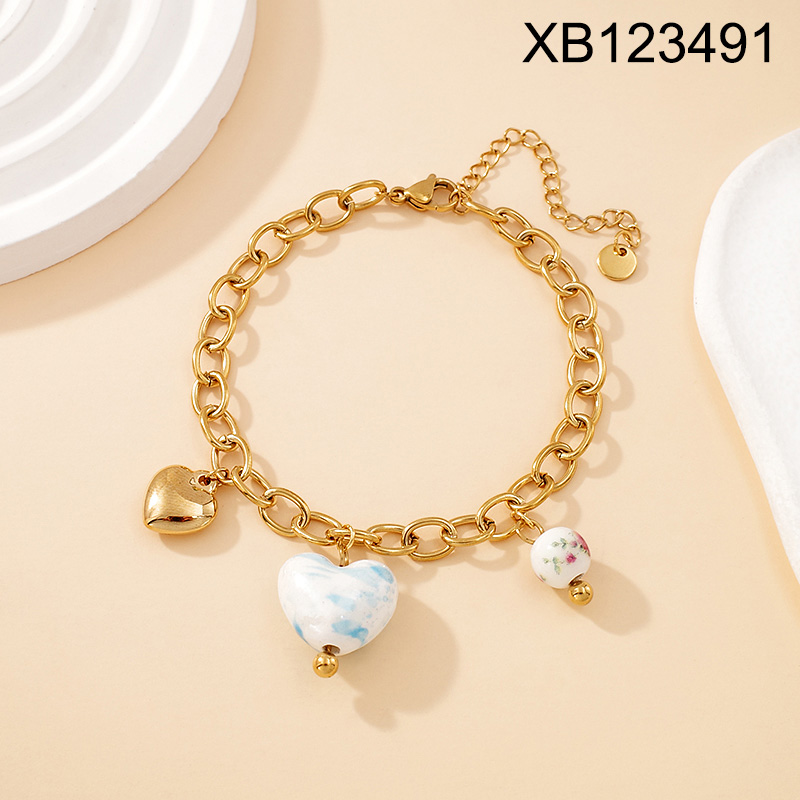 Home > Level B Stainless Steel New Trendy Women Jewelry Heart Golden Chain Valentine's Day Bracelet