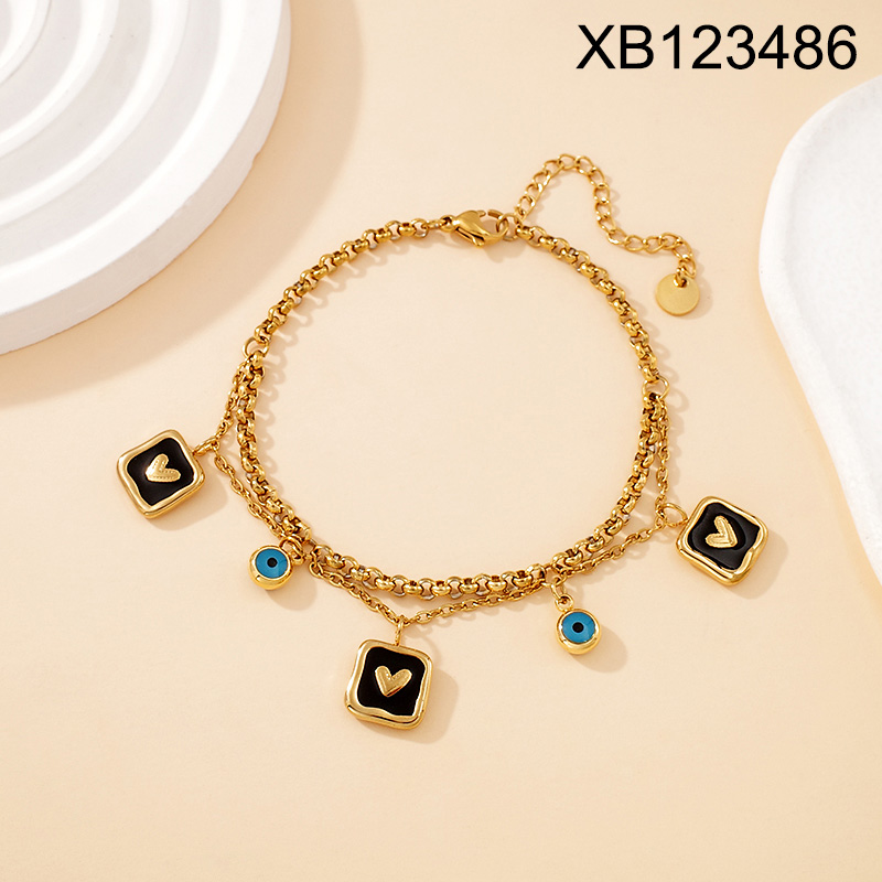Level B Stainless Steel New Trendy Women Jewelry Two Layers Chain Heart Eye Golden Bracelet