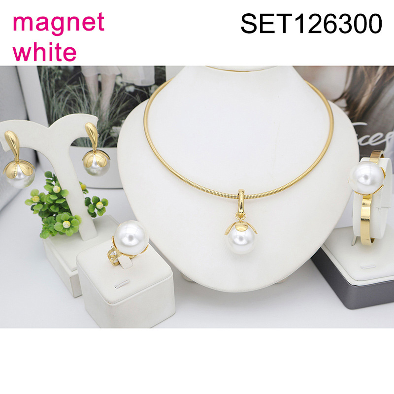 Level B Stainless Steel New Trendy Women Jewelry Pearl Style/White Plastic Beads Golden Magnet buckle 4pcs SET