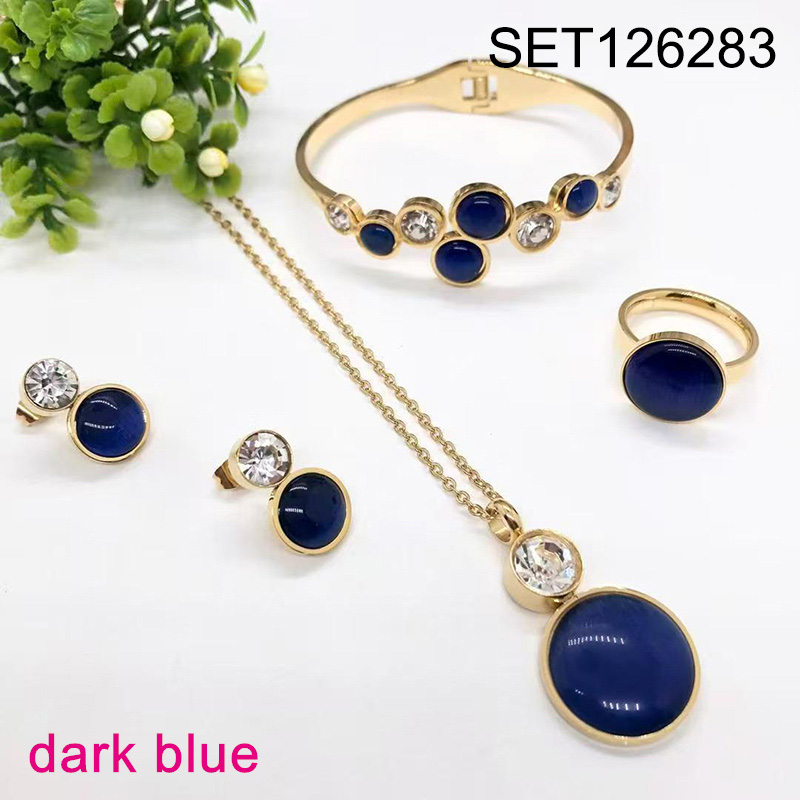 Level B Stainless Steel New Trendy Women Jewelry Round Dark blue Opal Stone Golden 4pcs SET