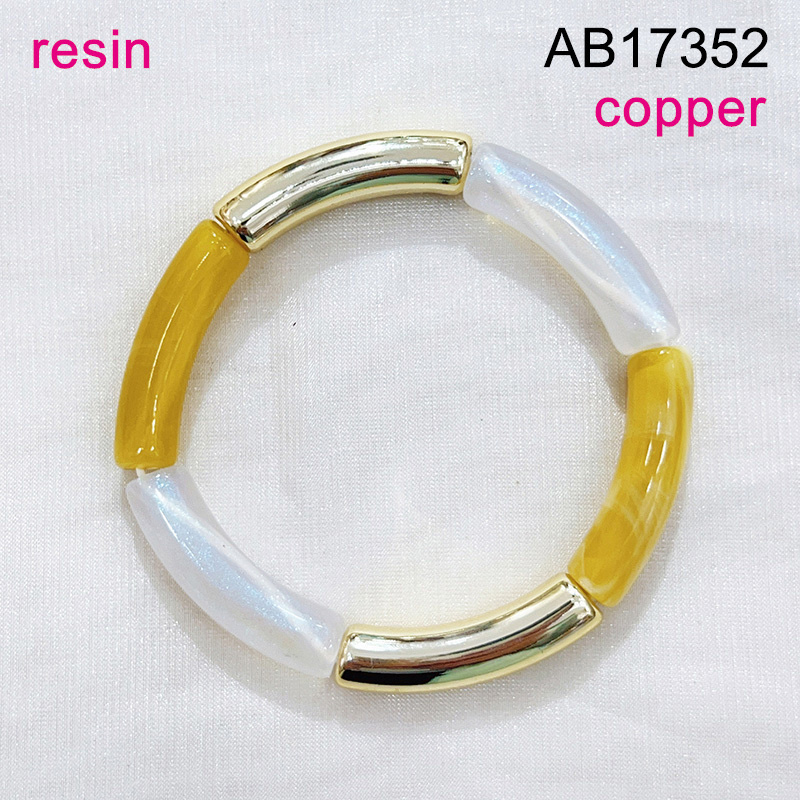 Level B Fashion Jewelry New Trendy Women Jewelry Resin Golden Elastic Bracelet;Material:copper (cobre)