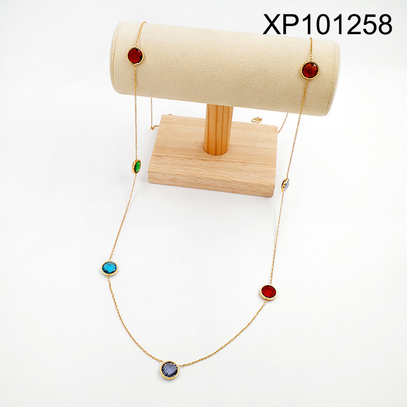 Home > Level A Stainless Steel New Trendy Women Jewelry Round Golden Sweater Chain Pendant