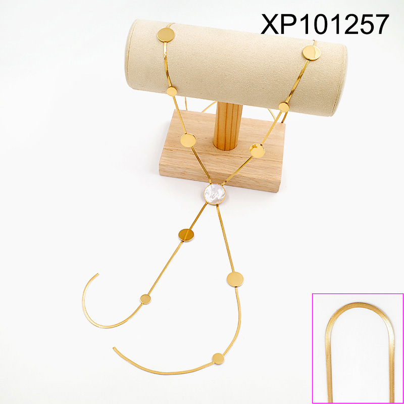Home > Level A Stainless Steel New Trendy Women Jewelry Round Golden Sweater Chain Pendant