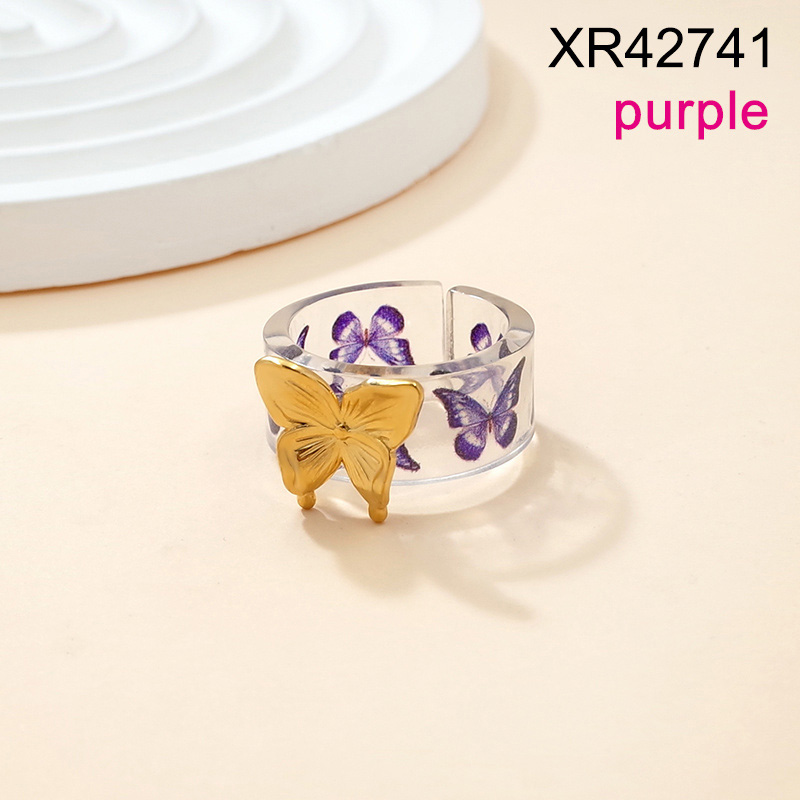 Level B Stainless Steel New Trendy Women Jewelry Animal Purple Butterfly Golden Open Rings;Ring size can be adjusted freely