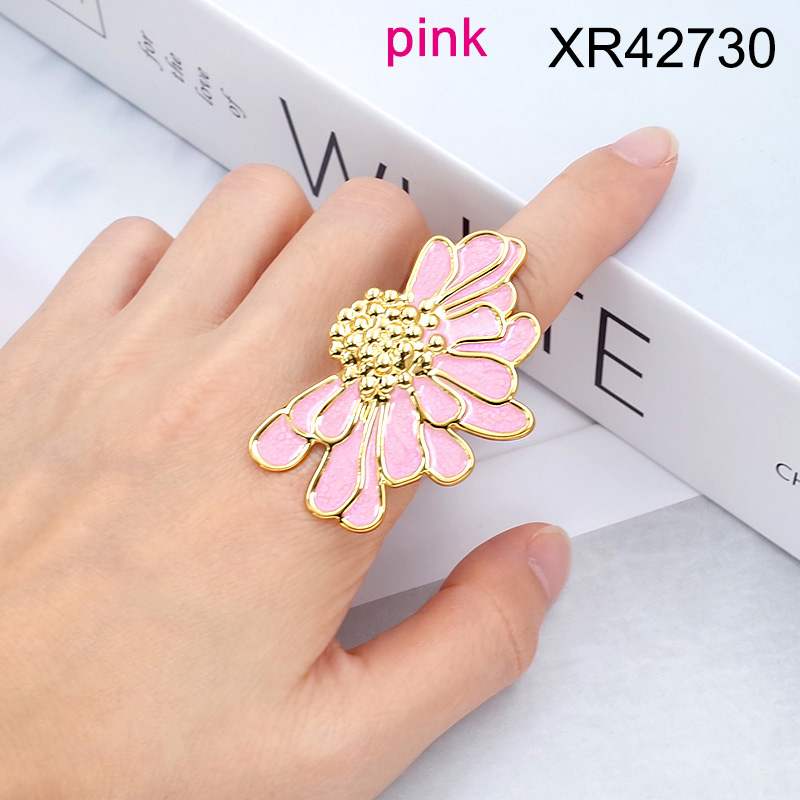 Home > Level C Stainless Steel New Trendy Women Jewelry Drip Oil/Enamel Pink Flower Golden Open Rings;Ring size can be adjusted freely