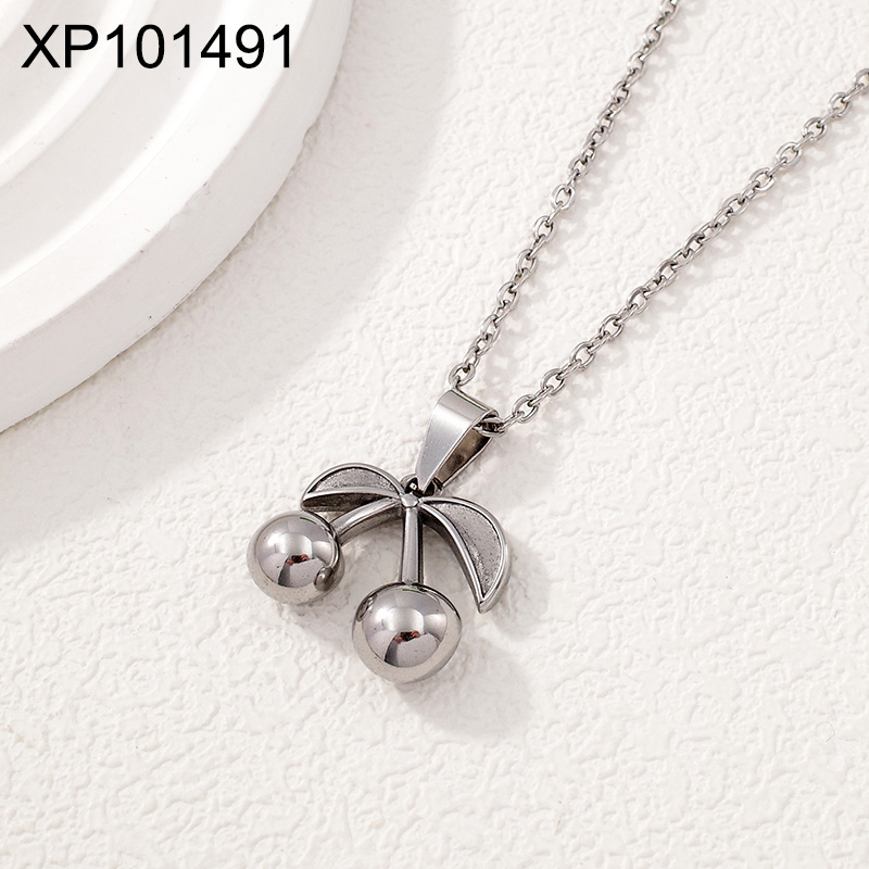Home > Level B Stainless Steel New Trendy Women Jewelry Summer fruit style Cherry Steel color Pendant