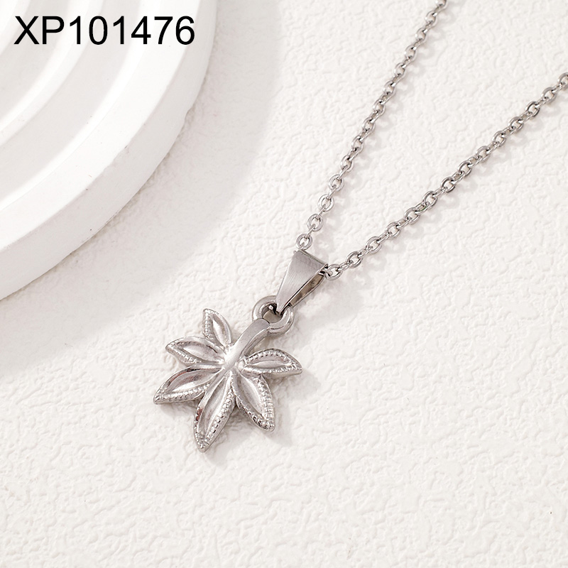 Level B Stainless Steel New Trendy Women Jewelry Maple Leaf Steel color Pendant