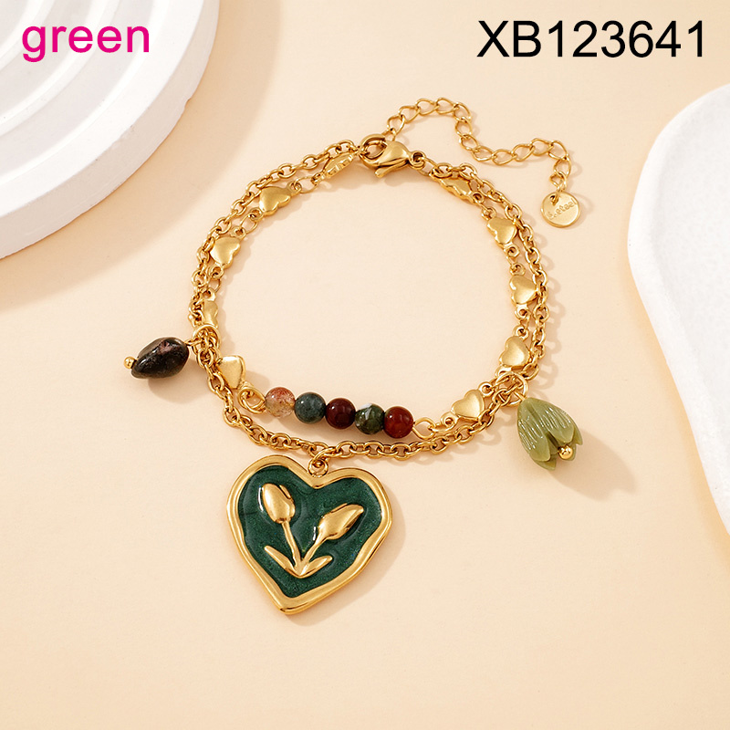 Level B Stainless Steel New Trendy Women Jewelry Drip Oil/Enamel Green Heart Golden Bracelet