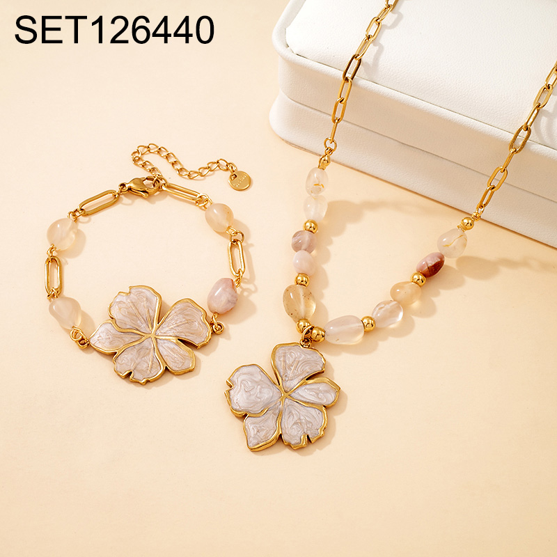 Level B Stainless Steel New Trendy Women Jewelry Drip Oil/Enamel Flower Golden Chain SET