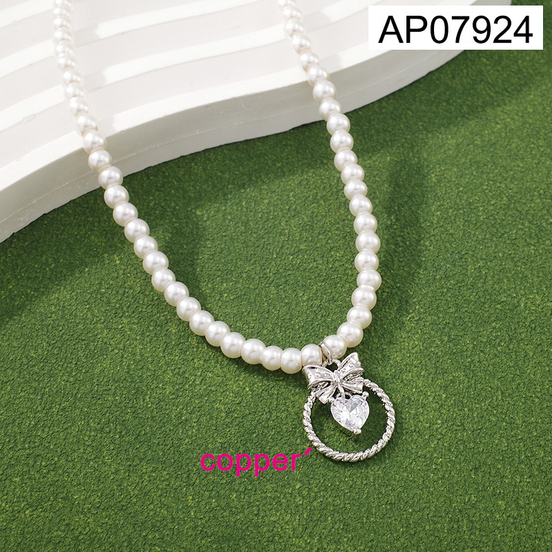 Home > Level B Fashion Jewelry New Trendy Women Jewelry Pearl Style/Plastic Beads Round Heart Bowknot Steel color Pendant;Material:copper (cobre)