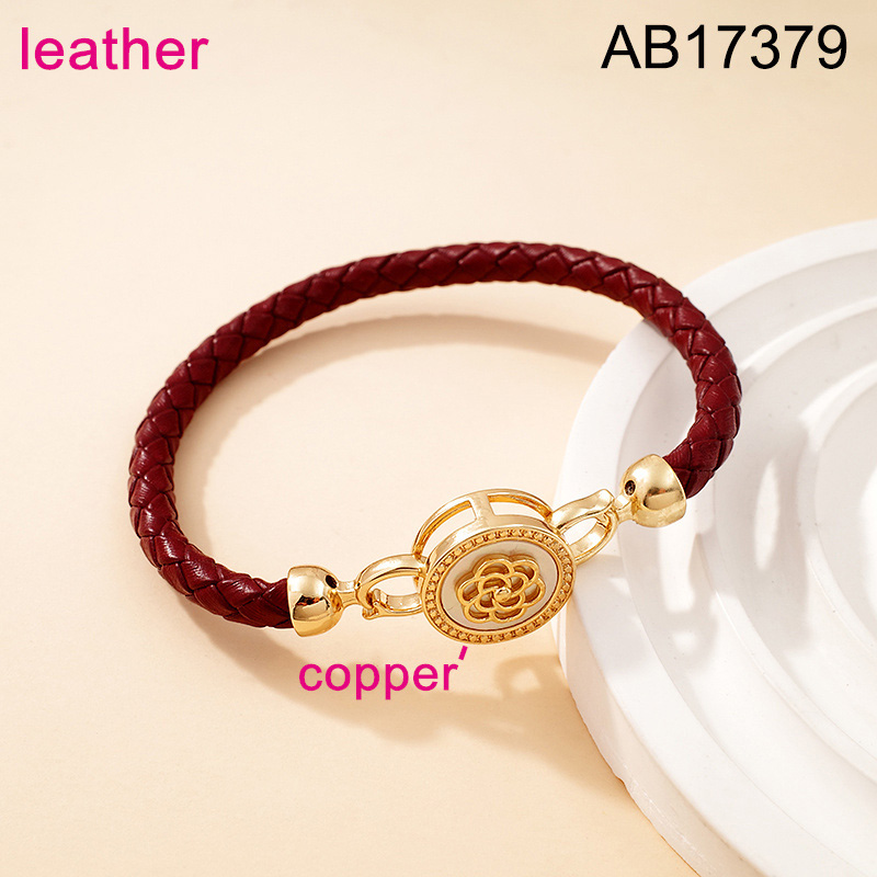 Level B Fashion Jewelry New Trendy Women Jewelry Flower Golden Leather Bracelet;Material:copper (cobre)