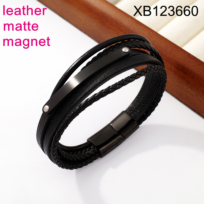 Home > Level B Stainless Steel New Trendy Man Jewelry Five Layers Chain Plating black Magnet buckle Leather Bracelet