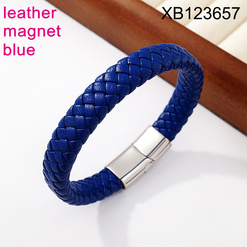 Home > Level B Stainless Steel New Trendy Man Jewelry Steel color Magnet buckle Blue Leather Bracelet
