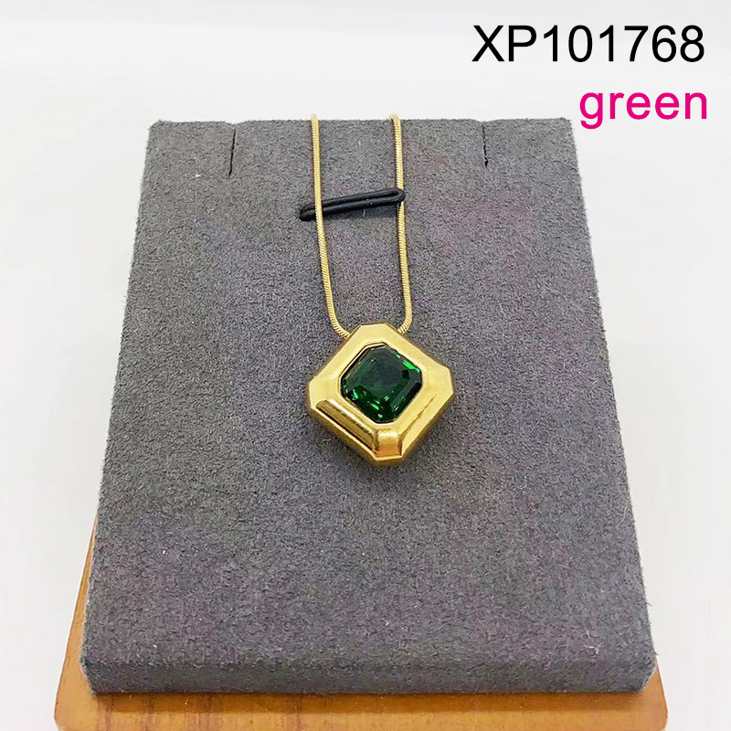 Home > Level B Stainless Steel New Trendy Women Jewelry Square Green Glass Zircon Golden Pendant