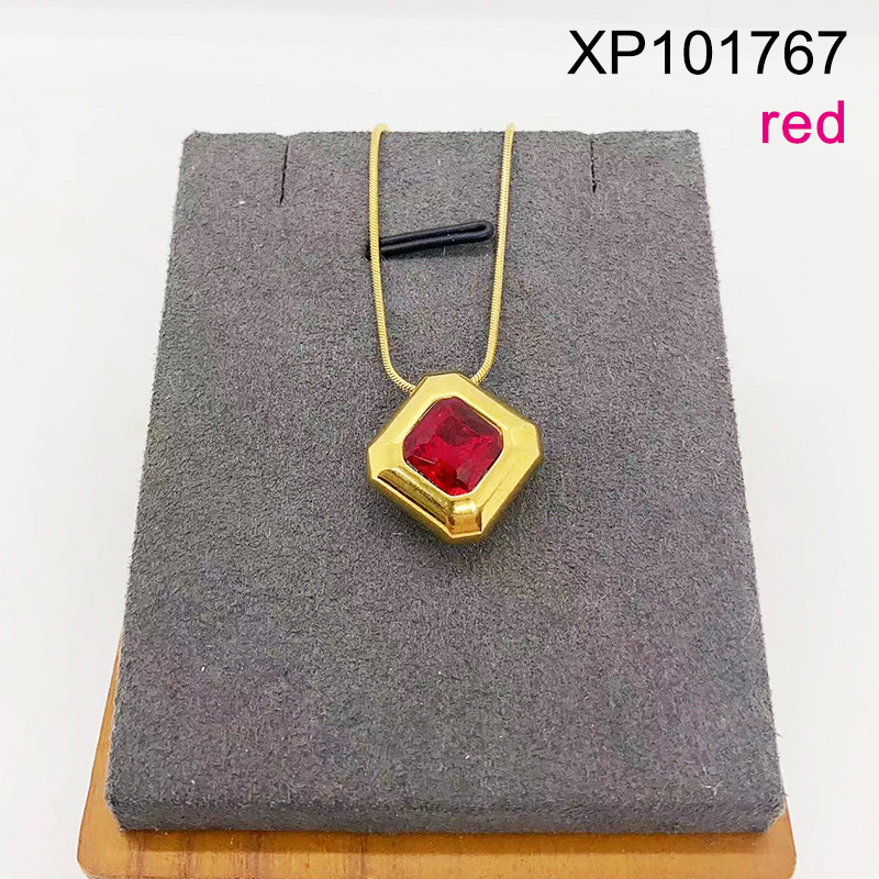 Home > Level B Stainless Steel New Trendy Women Jewelry Square Red Glass Zircon Golden Pendant