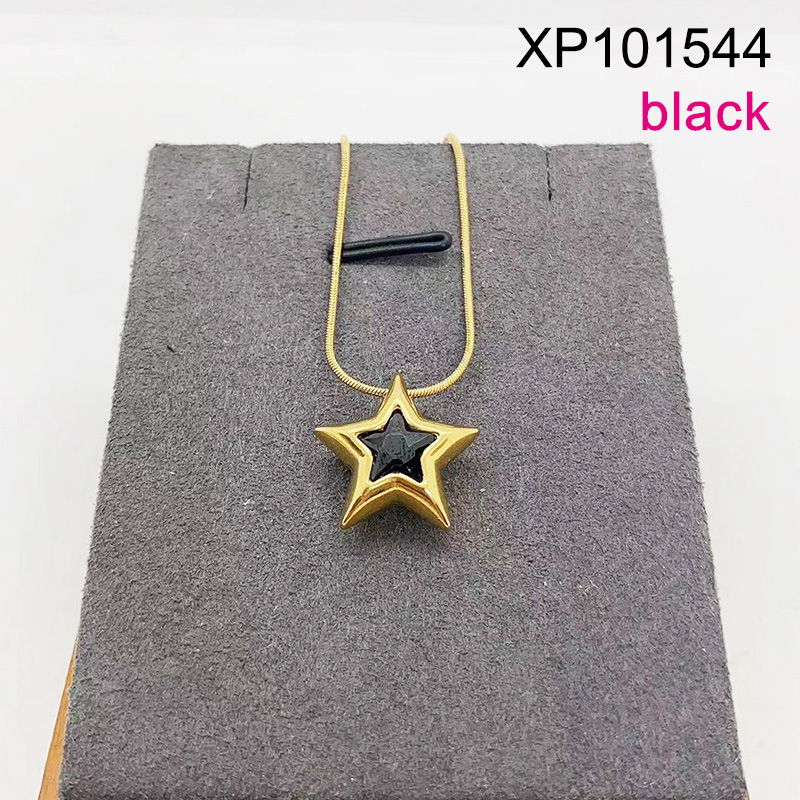 Level B Stainless Steel New Trendy Women Jewelry Star Black Glass Zircon Golden Pendant