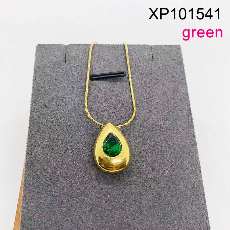 Home > Level B Stainless Steel New Trendy Women Jewelry Water Drip Green Glass Zircon Golden Pendant