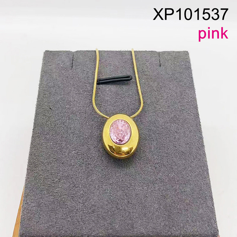 Level B Stainless Steel New Trendy Women Jewelry Oval Pink Glass Zircon Golden Pendant