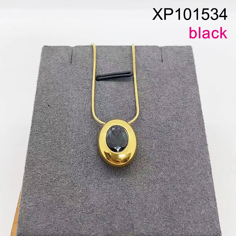 Home > Level B Stainless Steel New Trendy Women Jewelry Oval Black Glass Zircon Golden Pendant