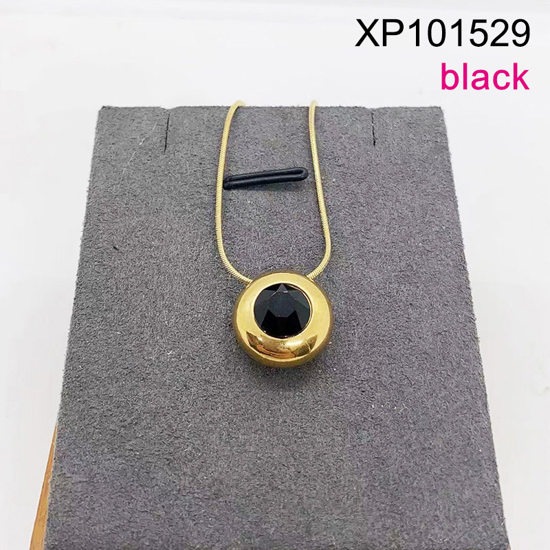 Home > Level B Stainless Steel New Trendy Women Jewelry Round Black Glass Zircon Golden Pendant