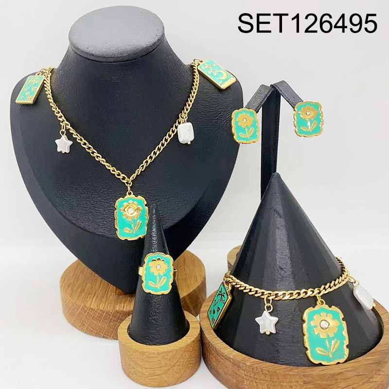 Level B Stainless Steel New Trendy Women Jewelry Flower Golden 4pcs SET