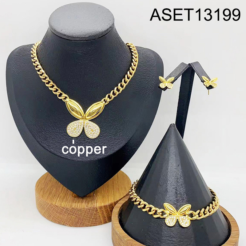 Level B Fashion Jewelry New Trendy Animal Butterfly Golden 3pcs SET;Material:copper (cobre)
