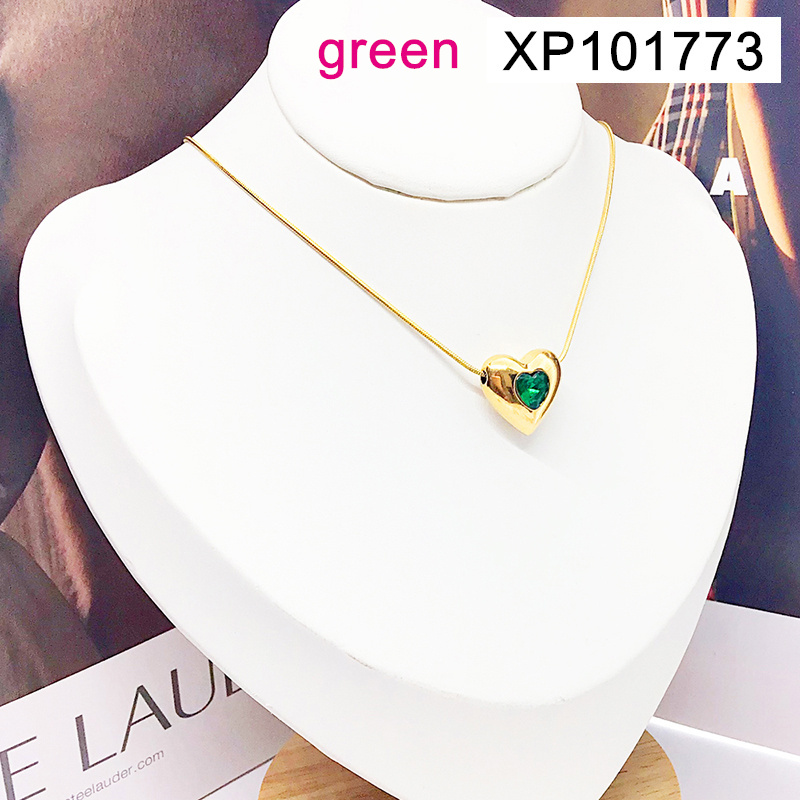 Home > Level B Stainless Steel New Trendy Women Jewelry Heart Green Glass Zircon Golden Valentine's Day Pendant