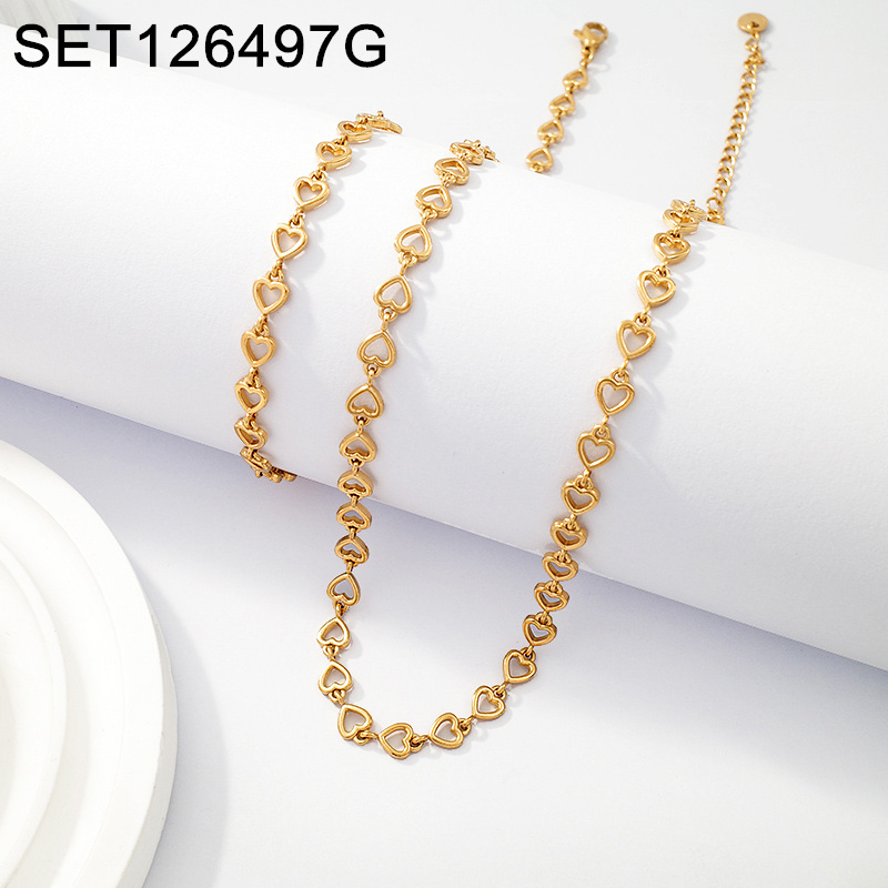 Home > Level A Stainless Steel New Trendy Women Jewelry Heart Golden Chain SET