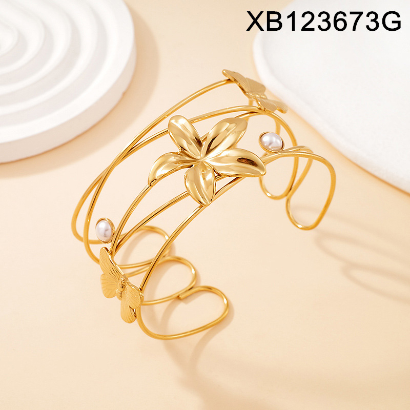 Home > Level A Stainless Steel New Trendy Women Jewelry Flower Golden Open Bangle;Bangle size can be adjusted freely