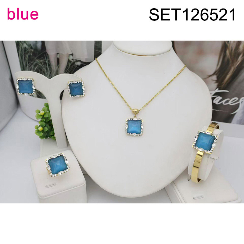 Level B Stainless Steel New Trendy Women Jewelry Square Blue Opal Golden 4pcs SET
