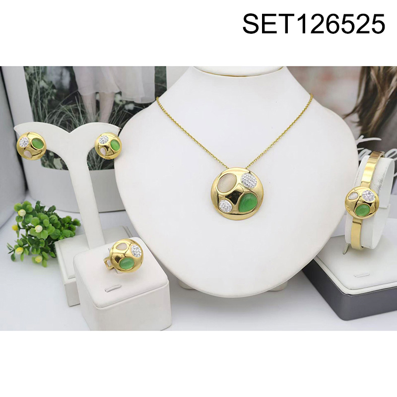 Level B Stainless Steel New Trendy Women Jewelry Round Golden 4pcs SET