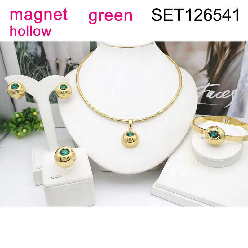 Level B Stainless Steel New Trendy Women Jewelry Hollow Round Green Stone Golden Magnet buckle 4pcs SET