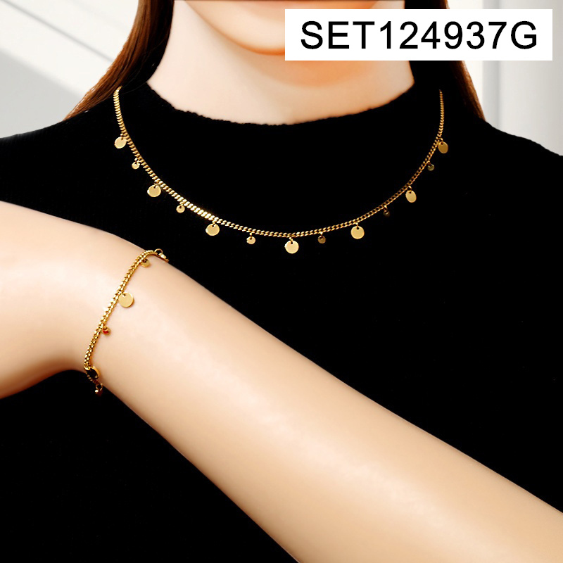 Home > Level A Stainless Steel New Trendy Women Jewelry Round Golden SET