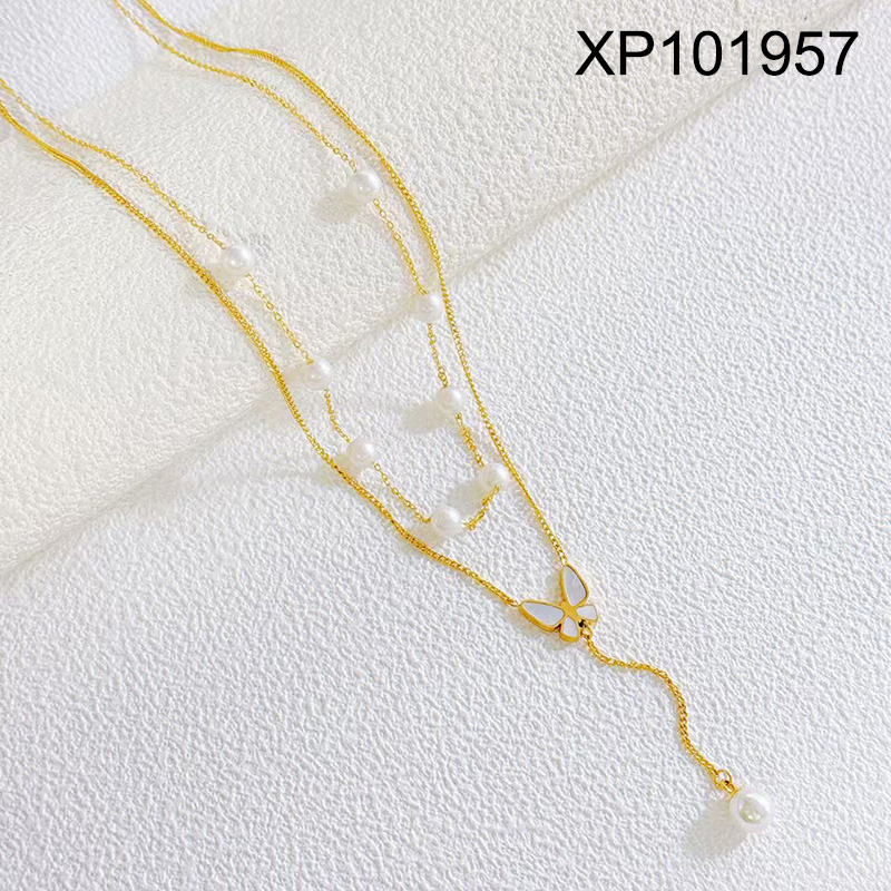 Level B Stainless Steel New Trendy Women Jewelry Two Layers Chain Pearl Style/Plastic Beads Animal Butterfly Golden Pendant