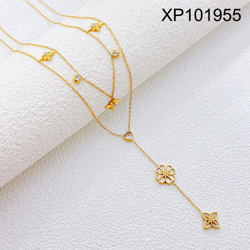 Home > Level B Stainless Steel New Trendy Women Jewelry Two Layers Chain SYC Eight-Pointed Star Golden Pendant