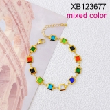 Level B Stainless Steel New Trendy Women Jewelry Green Square Golden Necklace