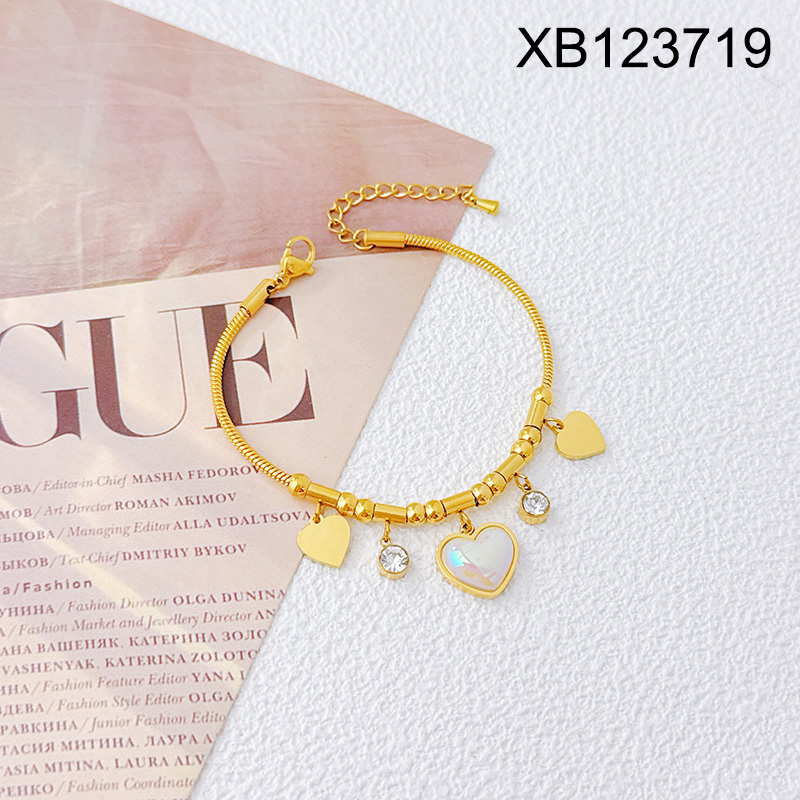 Level B Stainless Steel New Trendy Women Jewelry Pearl Style/Plastic Beads Heart Golden Bracelet