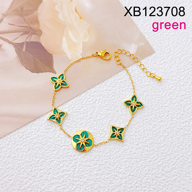 Level B Stainless Steel New Trendy Women Jewelry Green SYC Eight-Pointed Star Golden Bracelet