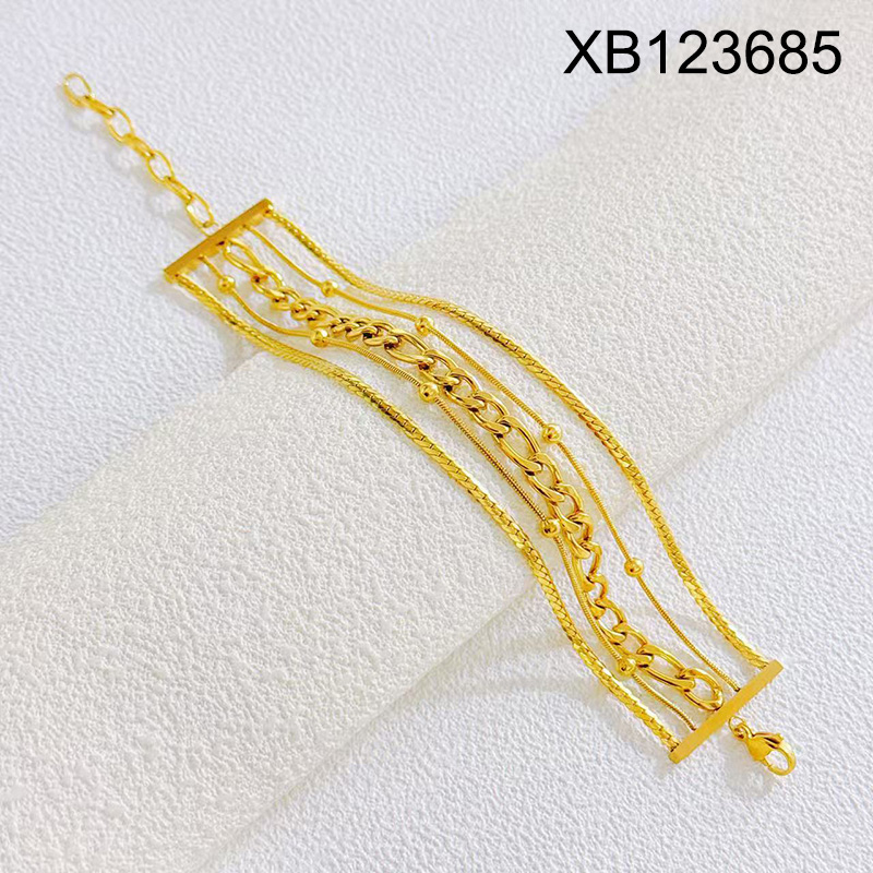 Level B Stainless Steel New Trendy Women Jewelry Five Layer Chain Golden Bracelet