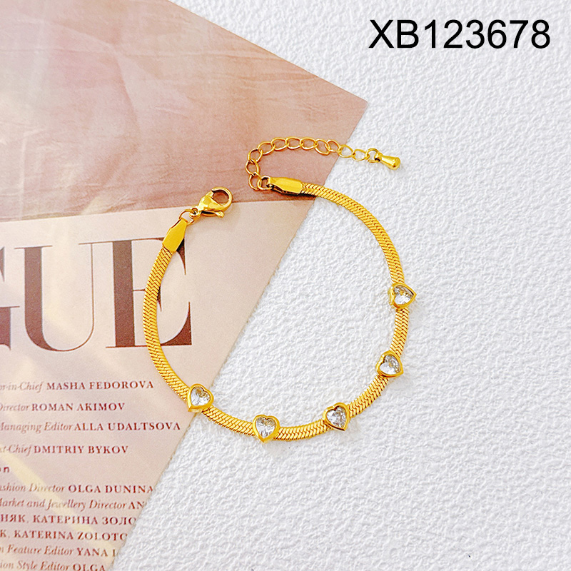 Home > Level B Stainless Steel New Trendy Women Jewelry White Heart Golden Bracelet