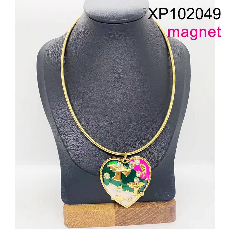 Level B Stainless Steel New Trendy Women Jewelry Drip Oil/Enamel Heart Golden Magnet buckle Valentine's Day Pendant