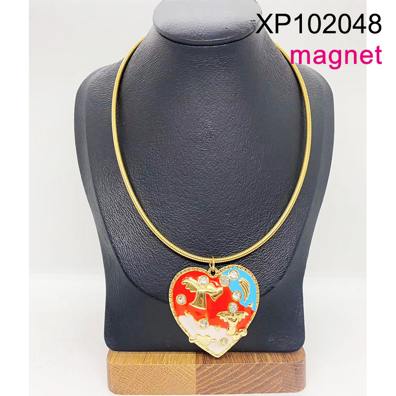 Level B Stainless Steel New Trendy Women Jewelry Drip Oil/Enamel Heart Golden Magnet buckle Valentine's Day Pendant