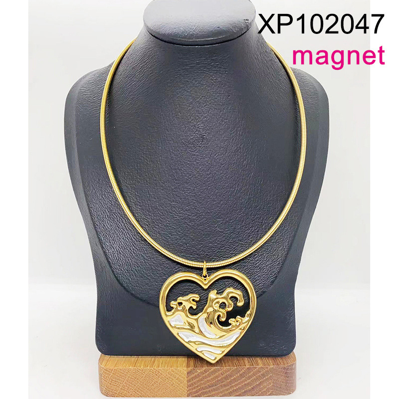 Level B Stainless Steel New Trendy Women Jewelry Drip Oil/Enamel Heart Golden Magnet buckle Valentine's Day Pendant