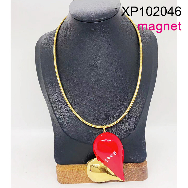 Level B Stainless Steel New Trendy Women Jewelry Drip Oil/Enamel Heart Golden Magnet buckle Valentine's Day Pendant
