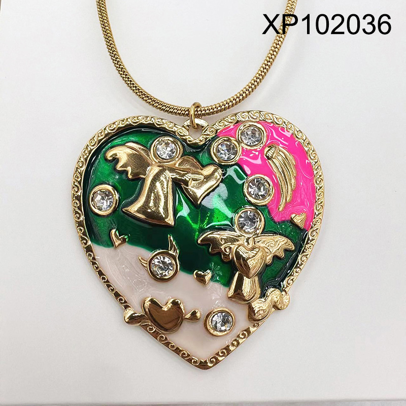 Level B Stainless Steel New Trendy Women Jewelry Drip Oil/Enamel Heart Golden Valentine's Day Pendant