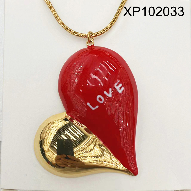 Level B Stainless Steel New Trendy Women Jewelry Drip Oil/Enamel Heart Golden Valentine's Day Pendant